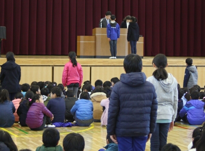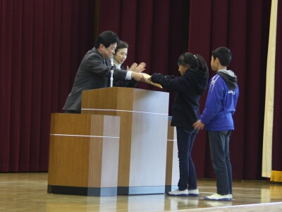 上三川町人権に関する作品コンクール作文の部で、最優秀賞の2人が代表で賞状をもらいました。