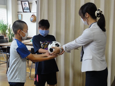 サッカーボールを寄贈していただきました。