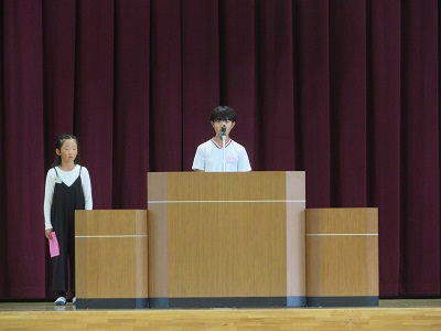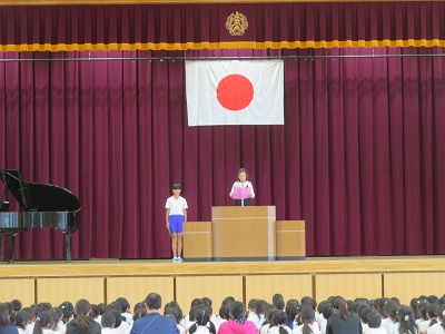 3年生と6年生の代表児童から、1学期の反省と2学期の抱負の発表がありました。
