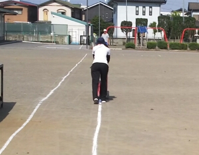 50m走のラインと、ソフトボール投げのラインを引きました。