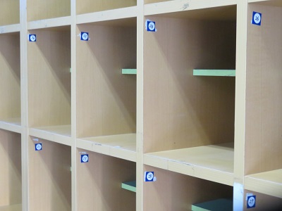 一人一人の下駄箱には、番号や名前が貼られています。