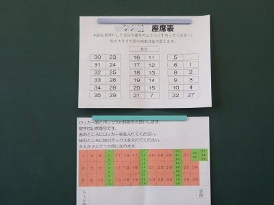 教室に入ると、黒板に様々な指示があるので、その指示に従って席に着きましょう。