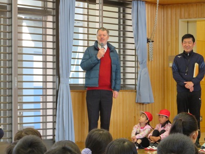 1人目の新しいALTの先生は、毎週木曜日に来校し、主に1、2年生と外国語活動をします。
