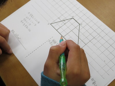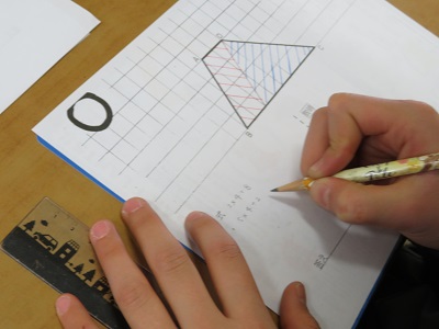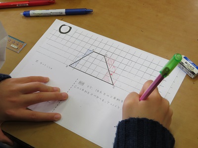 三角形の面積を求めるときに、線を引いたり移動をしたり、形を付け足したりして、何通りもの考えを出すことができました。