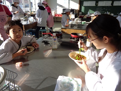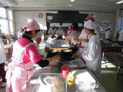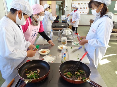 上三川町食育改善推進委員(ヘルスメイト)さん、栄養士さんの御協力のもと、本年度2回目の調理実習をしました。
