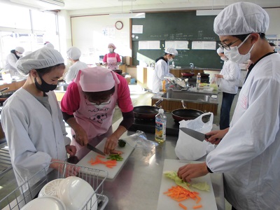 今回も一人調理実習なので、みんな真剣な表情で野菜を切っています。