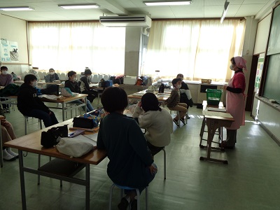 調理室の隣の部屋では、ヘルスメイトさんが、食品加工品やおせち料理の話をしてくださいました。おかげで、調理をしない時間も有効に学習することができました。
