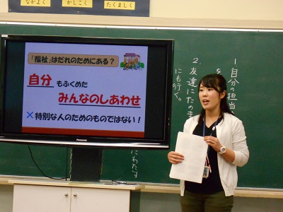 社会福祉協議会の方から、福祉についての話を聞きました。