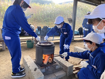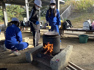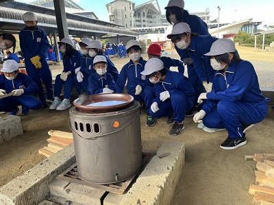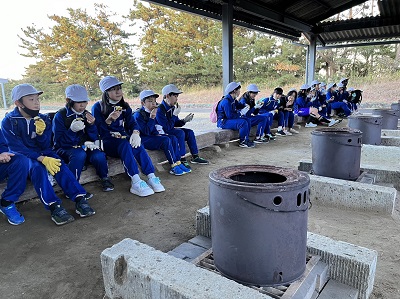 宿泊学習2日目の午後は、つぼ焼き芋と塩作りをしました。