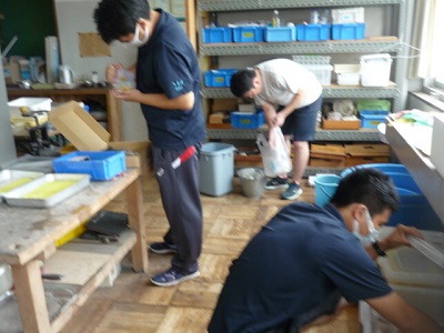 理科は、実験用具や薬品等たくさん備品があります。準備室を整理整頓しながら作業を進めました。