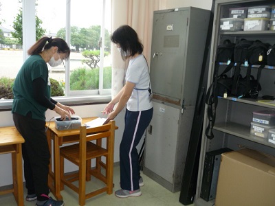 いつでも使えるように、点検しながら用具の個数と収納場所を台帳と照らし合わせます。