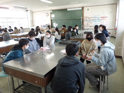 1組の様子です。緊張しながらも自分たちから進んで話をすることができました。