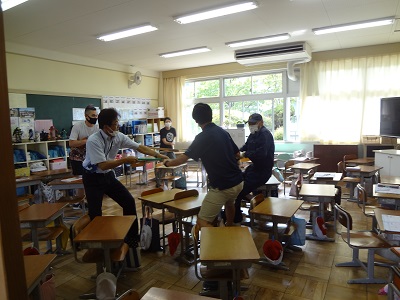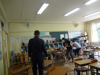 今回は、2年生の教室に侵入した想定で行いました。