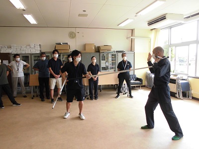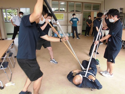 教員は、毎年、刺股についての実地訓練を行い、いざというときに備えています。