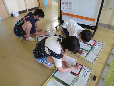 月に一度の委員会の時間には、給食目標や食育クイズなどの掲示物作成を行っています。
