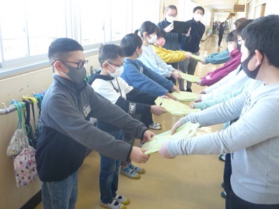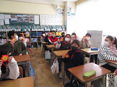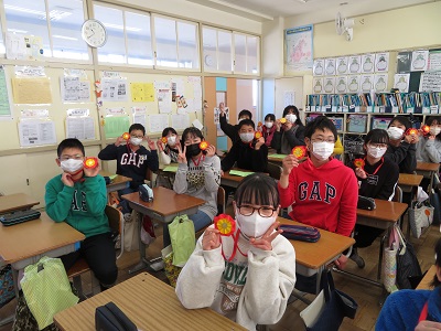 事前に、5年生がプレゼントを渡しに行きました。