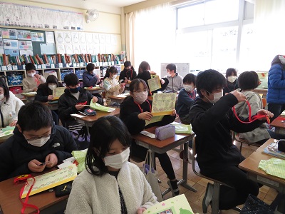 「メッセージカードは、こんな風に仕上がったよ。」と、1~4年生にも見てもらうことができました。