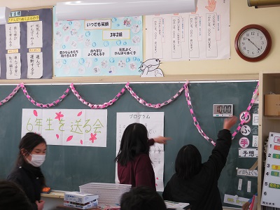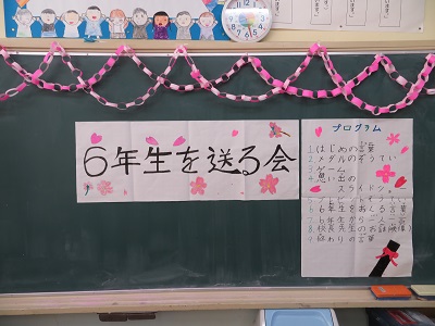 プログラムと「6年生を送る会」の題字は、5年生が作りました。