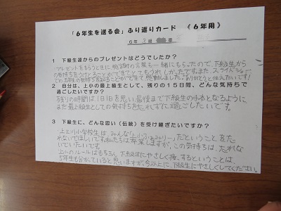 6年生は卒業に向けての心構えが、5年生は最高学年になる自覚がもてる会となりました。
