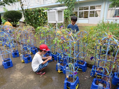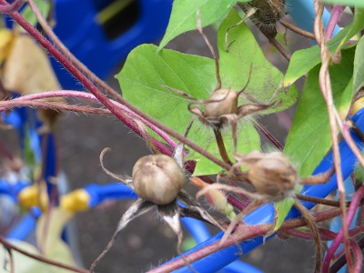 1年生が春に蒔いた朝顔の花に種ができました。