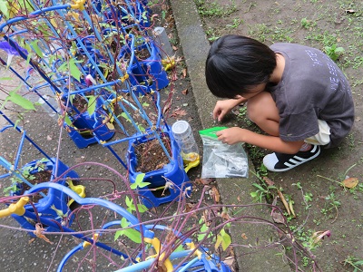 1年生 朝顔の種とり