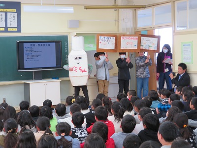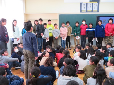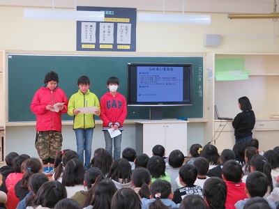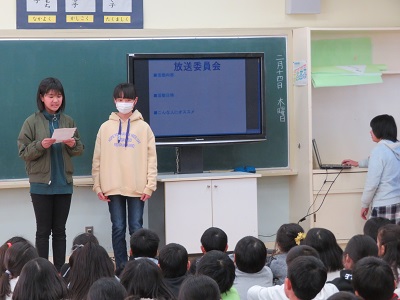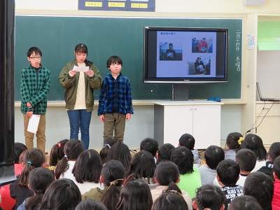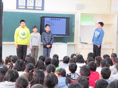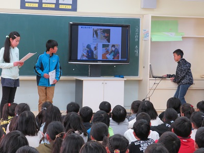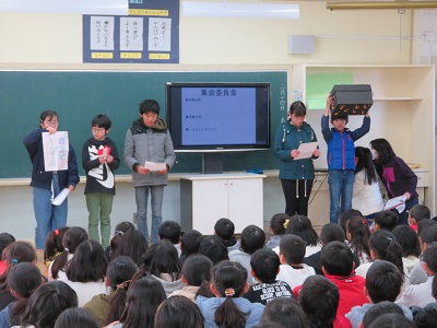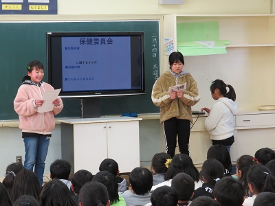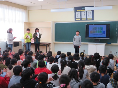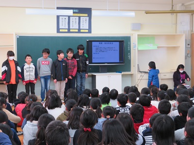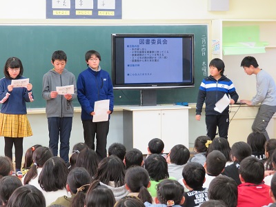 6年生が、今年1年間委員会で活動してきたことを4・5年生に発表しました。