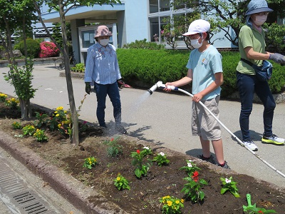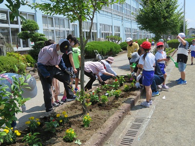 環境ボランティアの方が、花壇に花を植えてくれました。