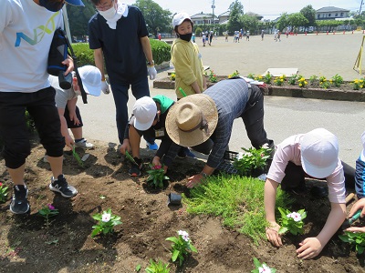 ボランティアの方に教えてもらいながら、楽しそうに植えていました。