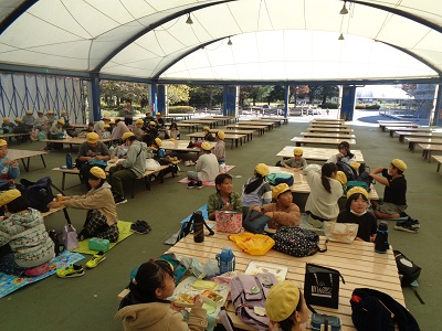 久しぶりに外で食べるお弁当は、とても楽しそうでした。