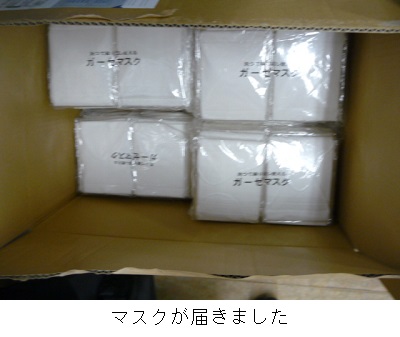 本日文科省から届いた2枚目のマスクを配りました。