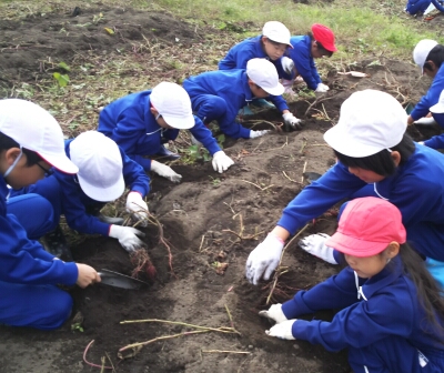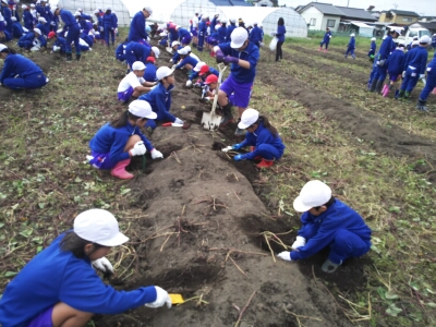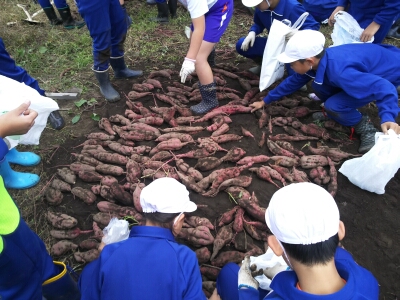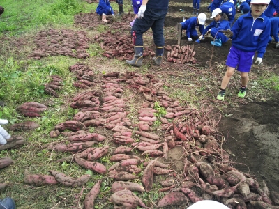 収穫祭で必要な芋を確保した後は、低学年の児童から持ち帰る芋を選んでいました。