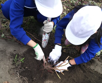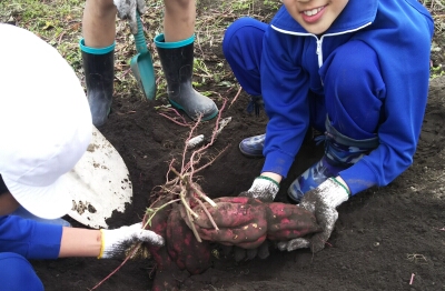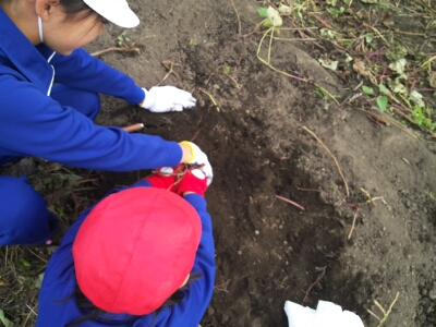 なかよし班で育てたさつま芋の収穫作業を行いました。