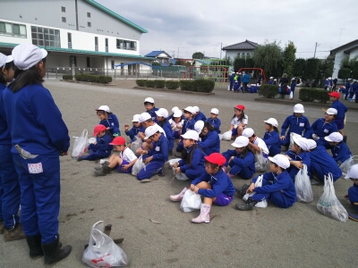 学校からの帰り道では、芋の袋を重そうに持ちながらも満面の笑みで自分達の掘った芋を運んでいました。