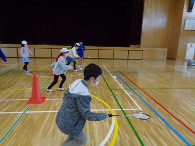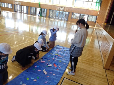 今回は5年生が中心となって計画されたミニ集会。多くの人に楽しんでもらうために,いくつかのブースに分かれて,ミニゲームを用意してくれていたようです。