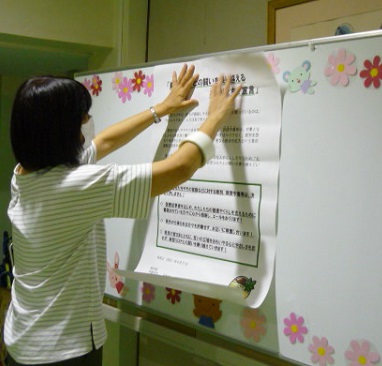校内でも来校者や児童が読めるように掲示しています。
