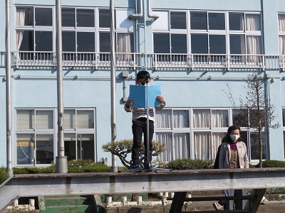 1年生と5年生から「1年間を振り返って」の作文発表がありました。