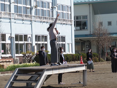 令和4年度の修了式が校庭で行われました。