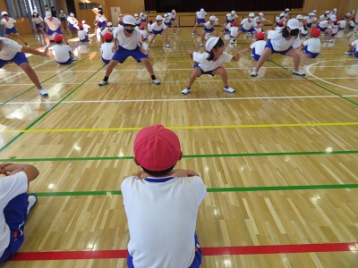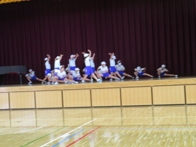 まず、6年生のダンスリーダーが踊って見せ、そのあと、6年生全員で踊りました。