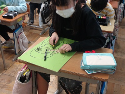 4年生 図工「ほると出てくるふしぎな花」