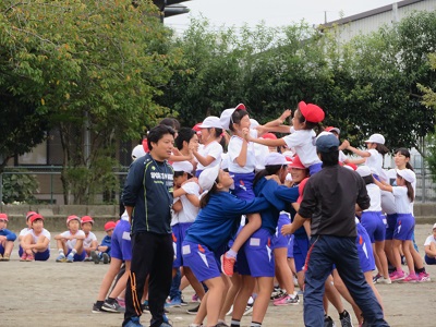 男女別に対戦します。1回戦は一騎打ち、2回戦は一騎打ちをして相手を倒したら、味方のチームの応援に行ってもOK!!迫力があります。