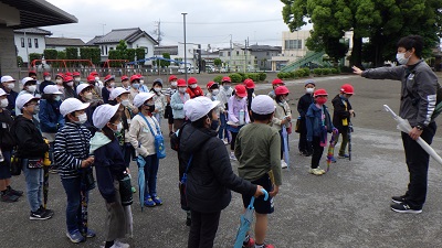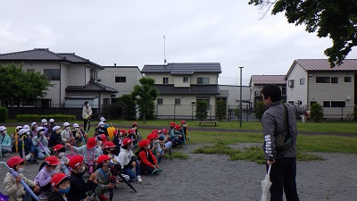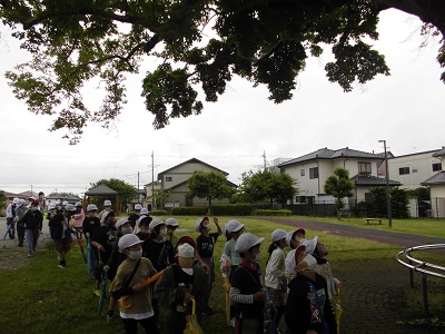 自然の観察に行くことや集団行動、安全面について確認してから、出発しました。