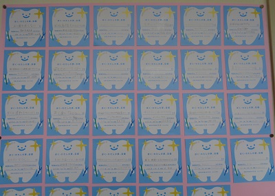 今回は、感染症対策のため、教室での実習は行わず、家庭での実践を課題としました。プレゼントしていただいた歯ブラシとデンタルフロスを使って、10日間、各家庭で実践しています。子供たちから話を聞くと、デンタルフロスの使い方も随分慣れてきたようです。これからも、歯磨きをしっかり頑張り、歯と口の健康を守っていきましょう。