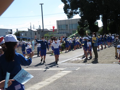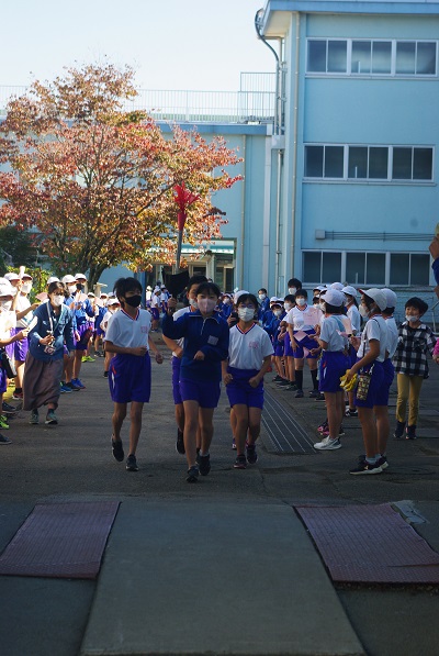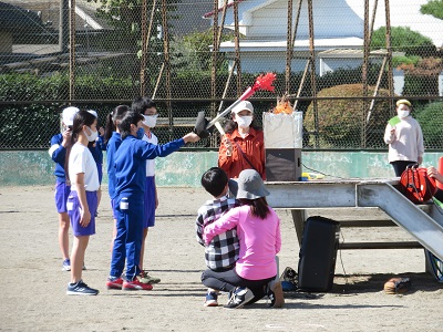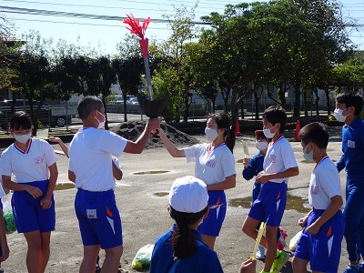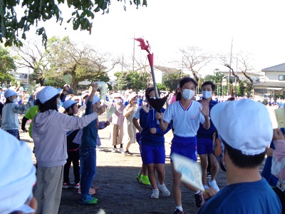 今年も、運動会を盛り上げるために、聖火リレーが行われました。
