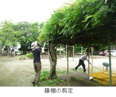 先週1週間、環境ボランティアの方に、校庭の木の剪定や中庭の除草をしていただきました。
