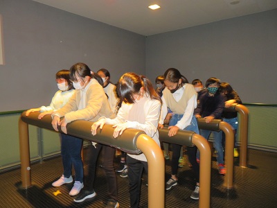 防災館では、防災についての映像を見た後、3つの体験をしました。