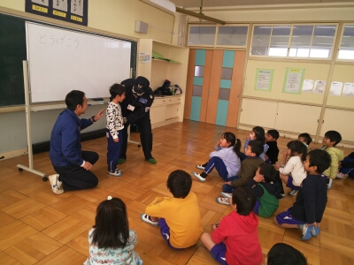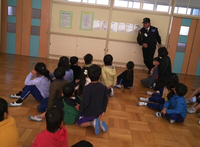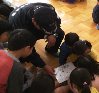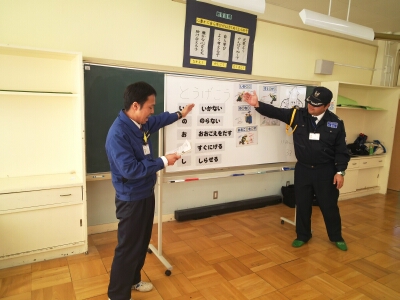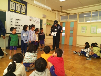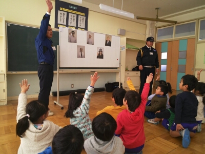『いかのおすし』の合言葉について、グループで話し合いました。防犯ブザーの使い方や大声を出して逃げることなど、危険な目に合わないための大切なことを教えていただきました。