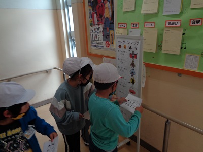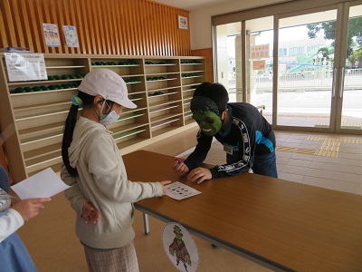 行ったのはスタンプラリー。密になるのを防ぐために,スタート場所を分散し,各教室で待機する集会委員からスタンプをもらいました。