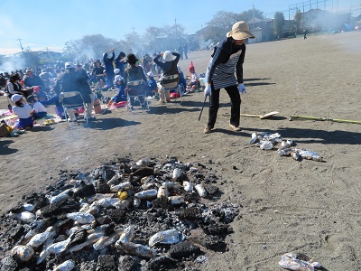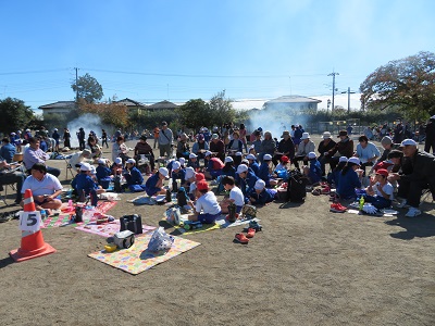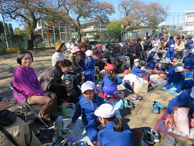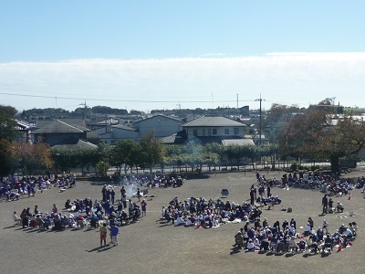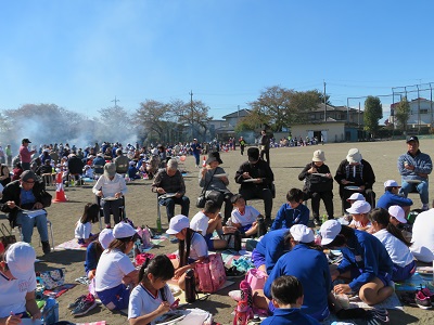 保護者ボランティア、64人、見守り隊の方12人、児童の祖父母の方400人弱の方と一緒に、サンマや焼き芋を食べたり、交流会をしたりして、楽しい時間を過ごしました。