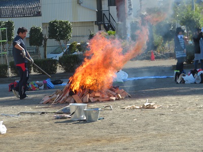 かまどでは、薪を燃やして焼き芋をする準備をしました。
