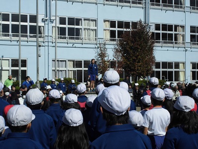 5年生代表児童は、見守り隊の方に感謝の言葉を伝え、席に案内しました。